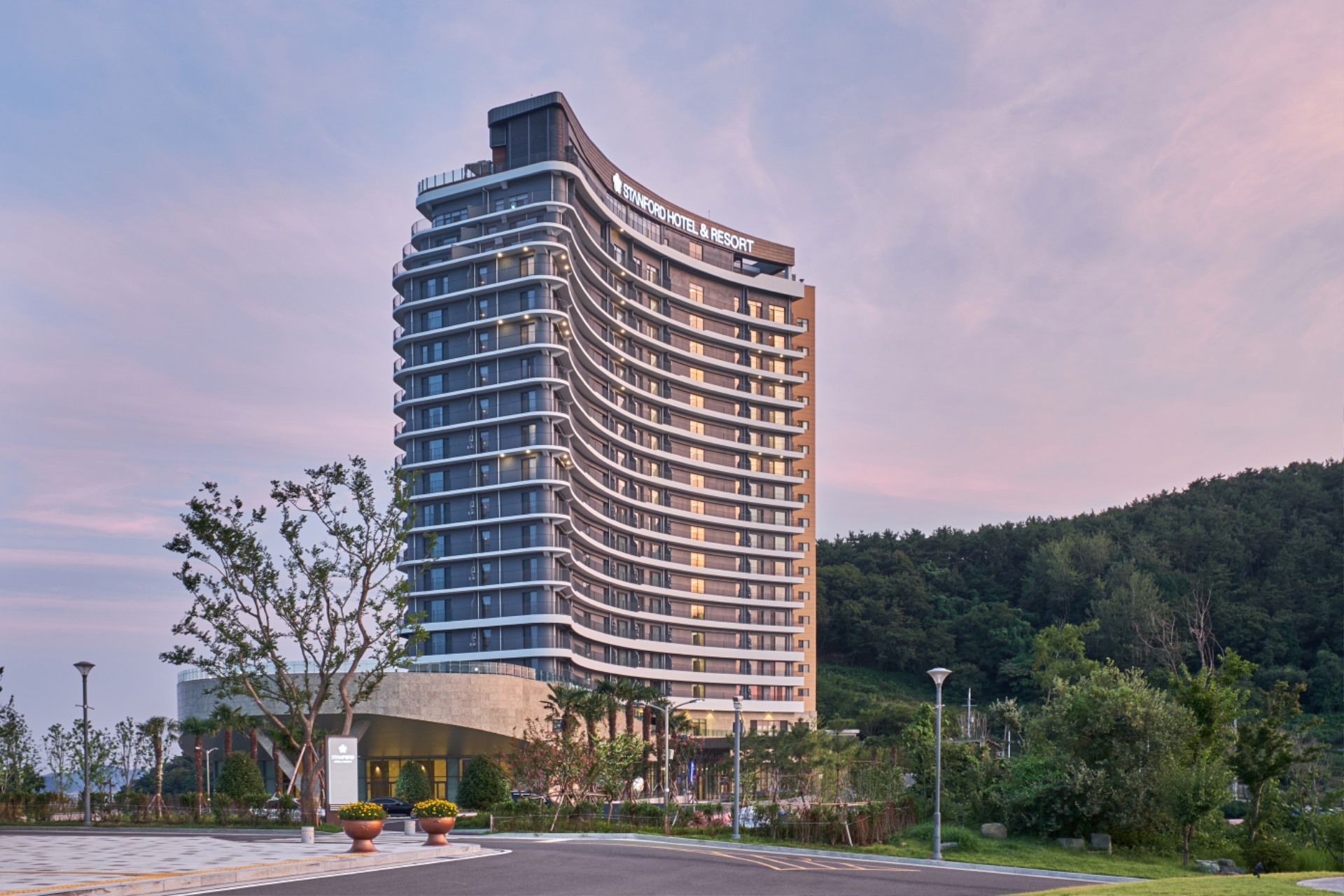 스탠포드 호텔앤리조트 통영은 도남 관광지 내에 위치하고 있으며, 전면으로 천예의 자연환경인 다도해를, 후면으로 야경이 아름다운 도남항을 조망할 수 있는 명소에 자리잡고 있다. 또한 국제적 문화공간으로서의 위상을 가지고 있는 통영국제음악당에 인접하고 있어, 바다에서 바라보는 경관에 스탠포드 호텔앤리조트 통영이 자연스럽고 부드러운 리듬에 맞추어 자리하기를 원했다. 지역의 지형(CLIFF)선을 모티브로 한 수평적 이미지를 강조하면서도, 바다를 향해 힘차게 항해하는 요트를 형상화하여 해양 리조트로서의 상징성과 지역의 랜드마크적 이미지를 구현하고자 하였다. 스탠포드 호텔앤리조트의 준공으로 관광객에게는 해양휴양도시에 걸맞는 품격있는 숙박시설을 제공하고 지역주민에겐 편안한 쉼터가 되는 새로운 명소가 되길 기대한다.
