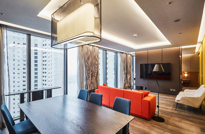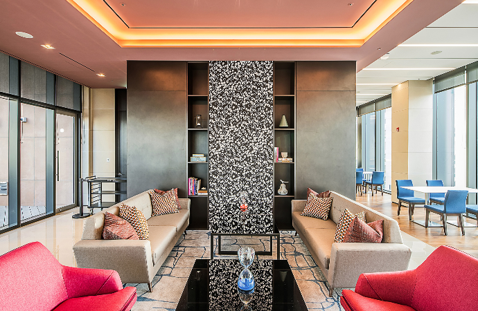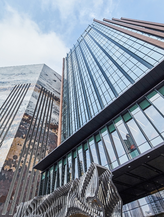수원 광교 신도시에 위치한 사업 부지는 광교호수공원에서 경기도청 신청사를 바라보는 기준으로 우측에 컨벤션센터가 위치해 있고, 좌측에 백화점, 호텔, 아쿠아리움 등의 지원시설들이 자리잡았다. 그 중에서도 호텔은 중심축에 위치한다. 한 곳에서 모든 것이 해결되는 '원데스티네이션(One Destination)'을 모토로 해외 관광객과 비즈니맨의 유입을 증가시키기 위해 친밀한 글로벌 호텔 브랜드가 선정되었다. 호텔의 전체적인 외부 이미지는 광교를 대표하는 원천호수에서 가져왔고, ‘Monolith in the Lake Side’를 주제로 한 디자인을 구현하기 위해 전체 매스를 솔리드하고 상승감있는 수직적 파사드로 표현했다. 일산 호수공원 두 배 규모의 광교 호수공원으로 바로 이어지며 숲 속의 휴식까지 제대로 즐길 수 있는 코트야드 메리어트 수원 호텔은 광교신도시가 MICE Complex City로 거듭나는데 있어 핵심 시설로 자리잡게 될 것이다.
