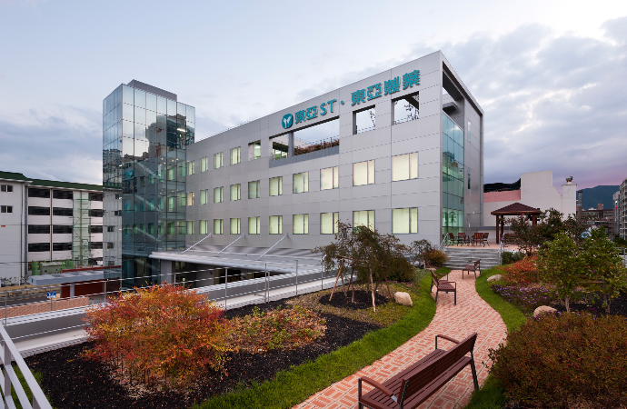동아제약 부산지점은 기존 건물의 노후로 신축되었다. 본사와 같은 프로토타입을 목표로 진행되었으며 풍수지리를 기반으로 전체적인 공간과 진입동선을 배치하였다. 사무공간과 물류창고 등 두 가지 목적의 공간이 존재하기 때문에 효율성을 위해 용도의 수직적 분리와 진출입 분리를 계획하였다. 건물 전면에는 광고효과를 고려하여 동아제약만의 Identity를 적용시킨 유리타워를 배치하였다. 물류창고로 차랴으이 진출입이 많은 점을 고려해 층고를 이용하여 보행 동선이 방해받지 않도록 했다.