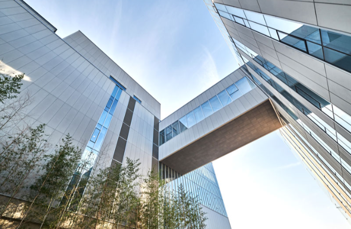 기존 1차 연구소의 재료와 모듈을 최대한 사용하여 하나의 큰 건물처럼 연결하면서도, 브릿지의 전면과 후면을 다른 높이로 계획하여 건물 사이에 아늑함을 만들어냈다. 하부 공간은 중정과 아트리움으로 잇고, 그 사이 옥외 공간에 대나무를 심어 바람이 지나갈 때 나뭇잎 스치는 소리로 공간을 풍성하게 채웠다. 1층 로비는 복도를 사이로 멀티 라운지와 아트리움을 두어 연구원들의 소통과 교류를 고려했다. 4층까지 관통하는 아트리움에는 3개의 독립된 희외 공간을 배치하고, 그 뒤쪽 공간에는 벤치를 두어 창문 너머 대나무를 바라보며 사색을 즐길 수 있는 공간을 구성했다. 노출콘크리트 마감과 나무 외장재는 시간의 흐름을 고려하여 선정했는데, 세월을 견디며 점차 회색빛으로 바래는 목재는 콘크리트로 동화되며 노출콘크리트면은 태양의 위치에 따라 하루 24시간 다른 표정을 보여준다.