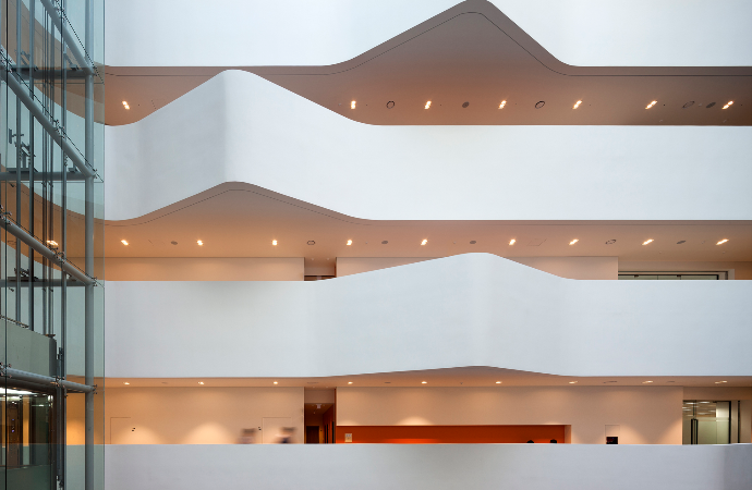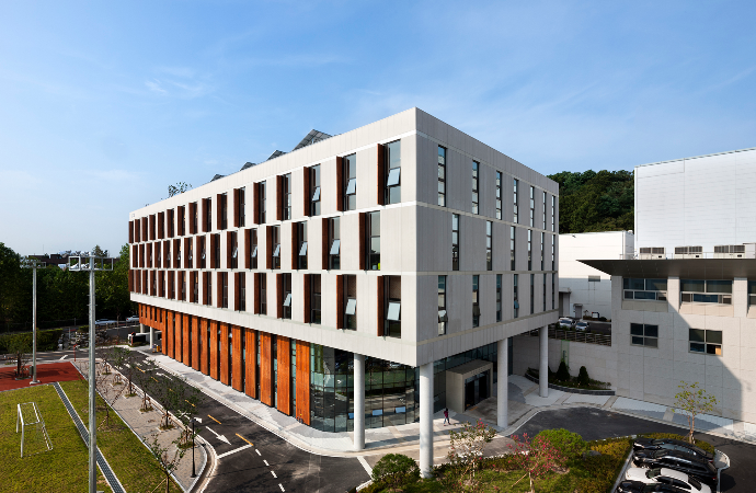 본관동은 국가핵융합연구소의 아이덴티티를 바탕으로 기존 실험동과 조화를 이루는 건축물로 계획되었다. 또한 핵융합 관련 기술을 활용해 신산업 창출에 기여하는 연구소의 성격에 맞게 최적의 모듈 계획과 공간의 가변성을 최대한 고려했으며 미래 에너지를 개발하는 연구소의 목적에 부합하는 에너지 절감 대책을 통해 자연과 공존하는 친환경 건축물을 선보이게 되었다.